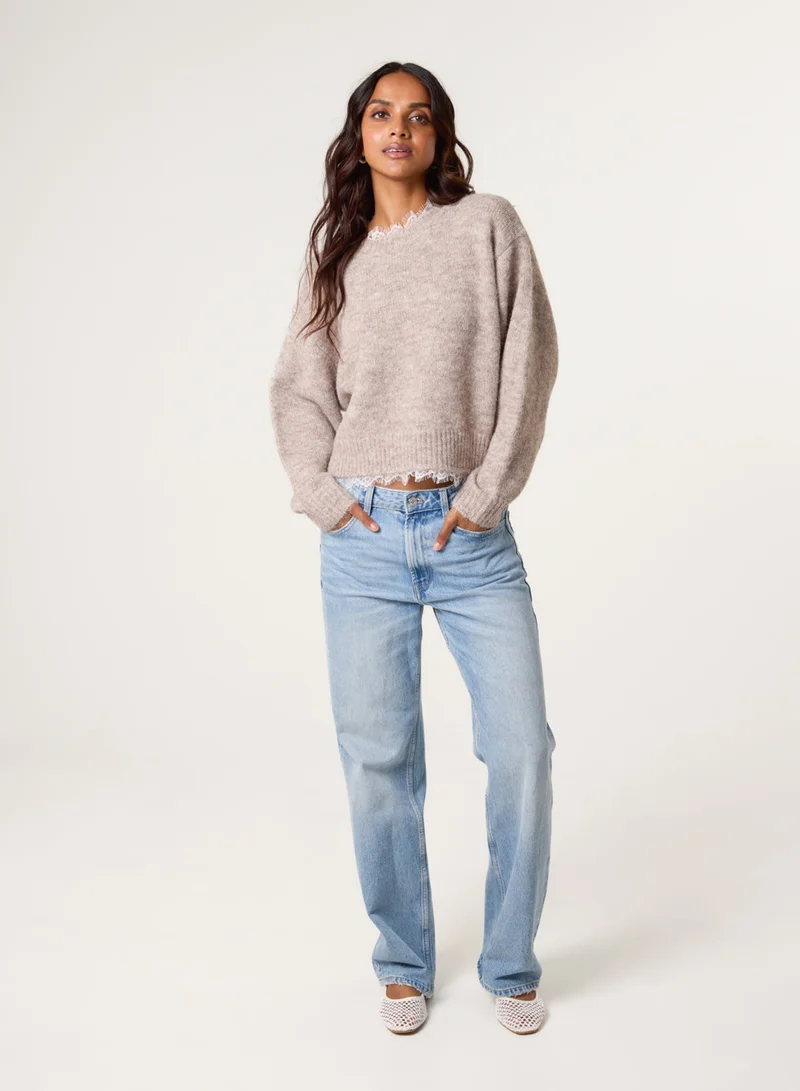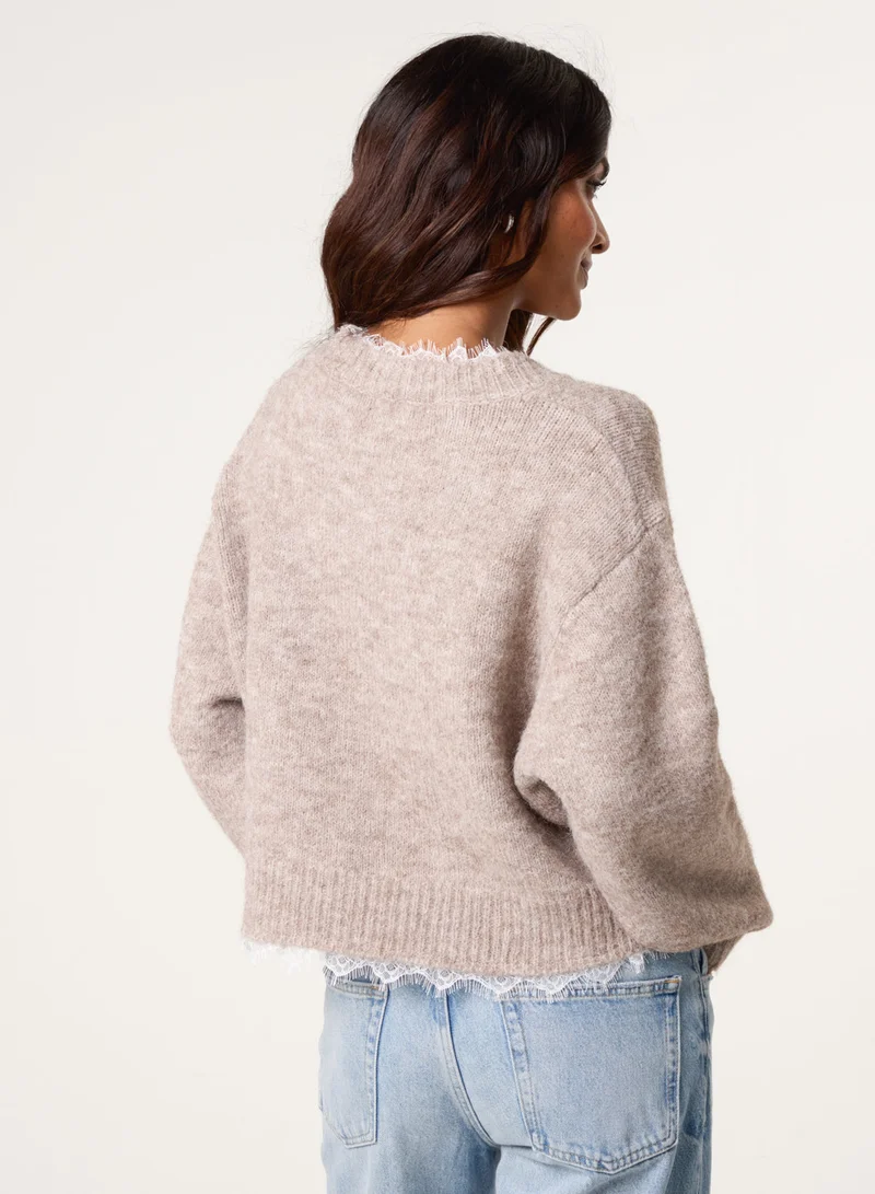 Dress code: cosy glam;; This soft knit jumper is made up with a stunning lace detail. This is the perfect jumper to take you from desk to dinner