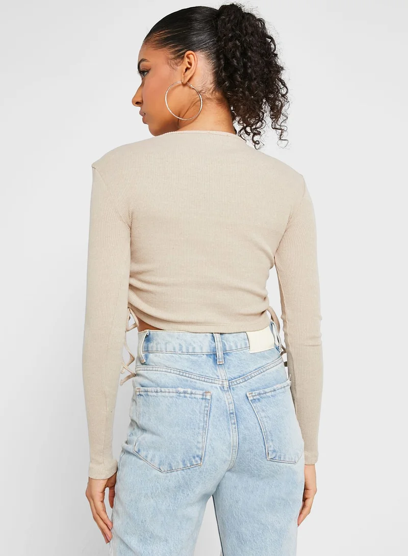 boohoo Crew Neck Ribbed Crop Top