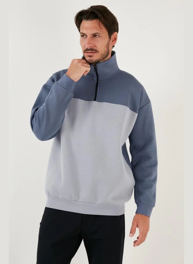 Buratti Buratti Regular Fit Zippered Stand Collar Furry Soft Raised Winter Sweat Men's SWEAT 5905343