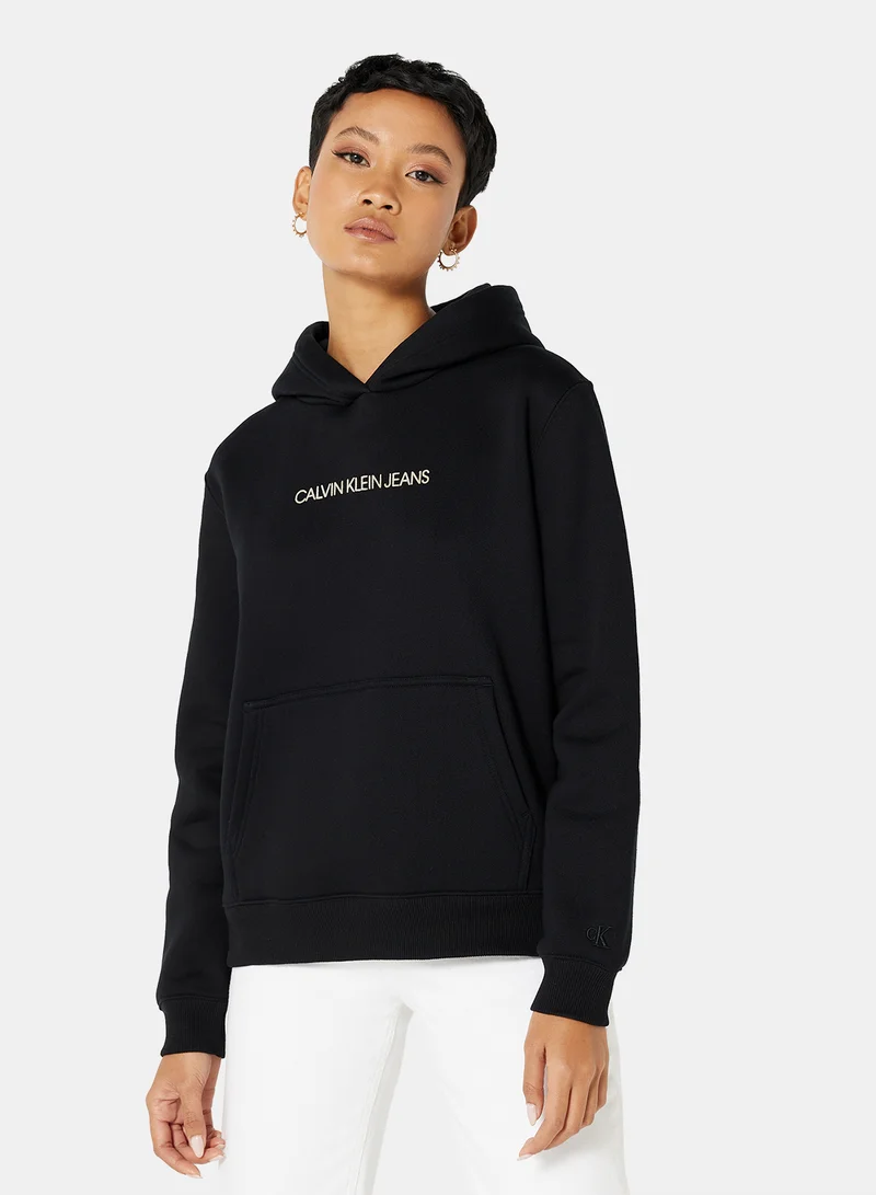 Calvin Klein Jeans Embroidered Logo Fleece Hoodie Black