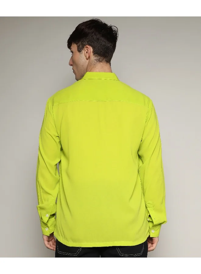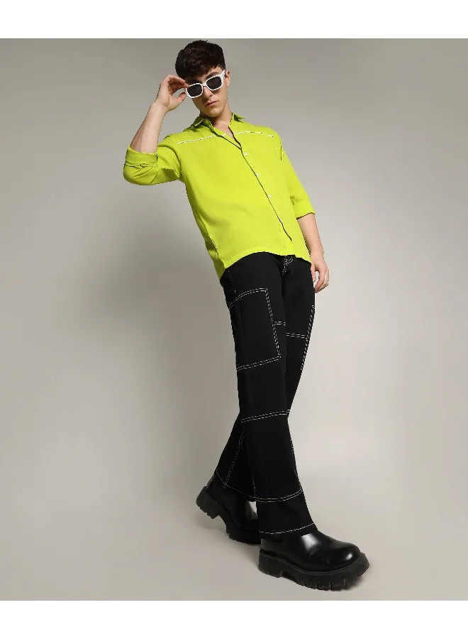 Campus Sutra Men's Lime Green Contrast Piping Shirt For Casual Wear | Spread Collar | Long Sleeve | Button Closure | Shirt Crafted With Comfort Fit For Everyday Wear