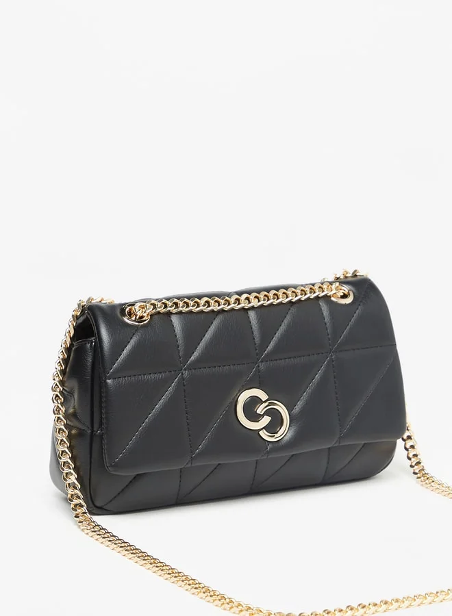 • It gets an attractive flair from the metallic chain strap and clasp closure across the flap