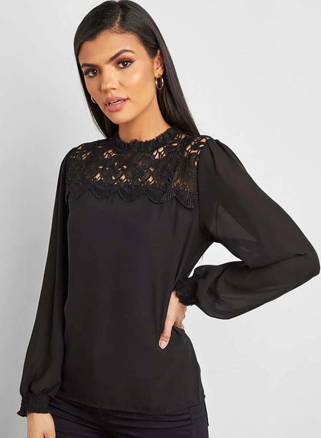 Closet By Styli Broderie Yoke Blouse Black