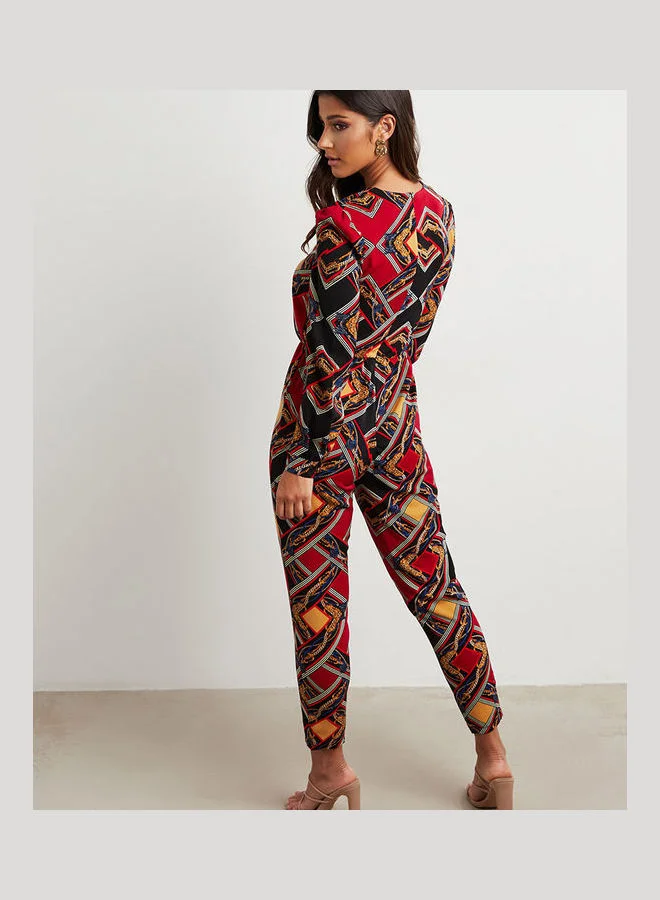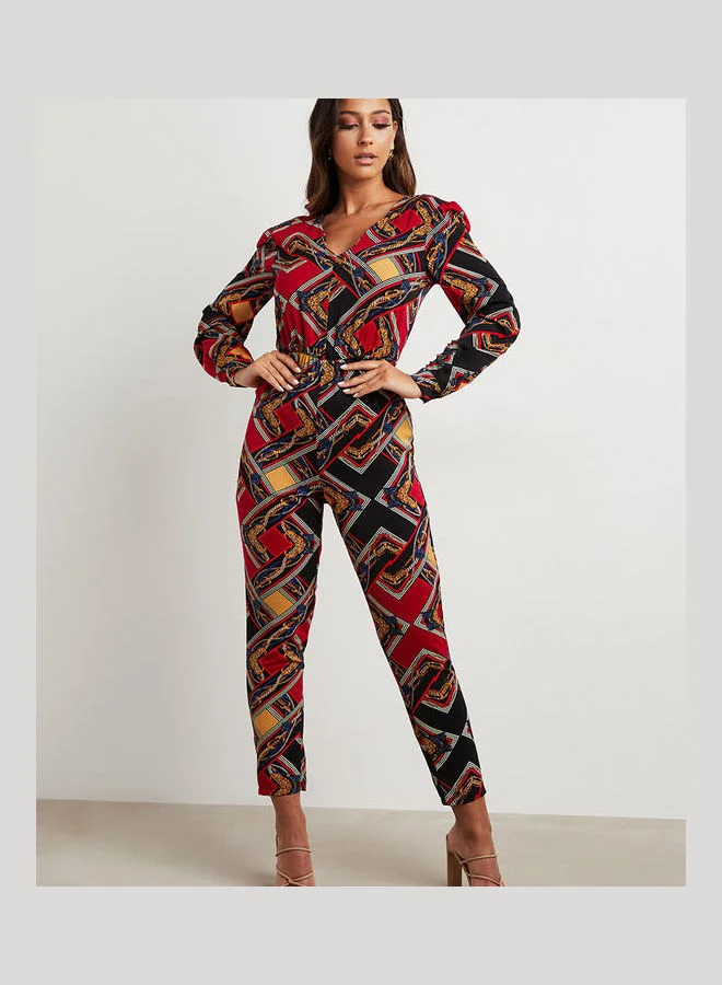 Closet By Styli Chain Printed V Neck Skinny Jumpsuit Multicolour