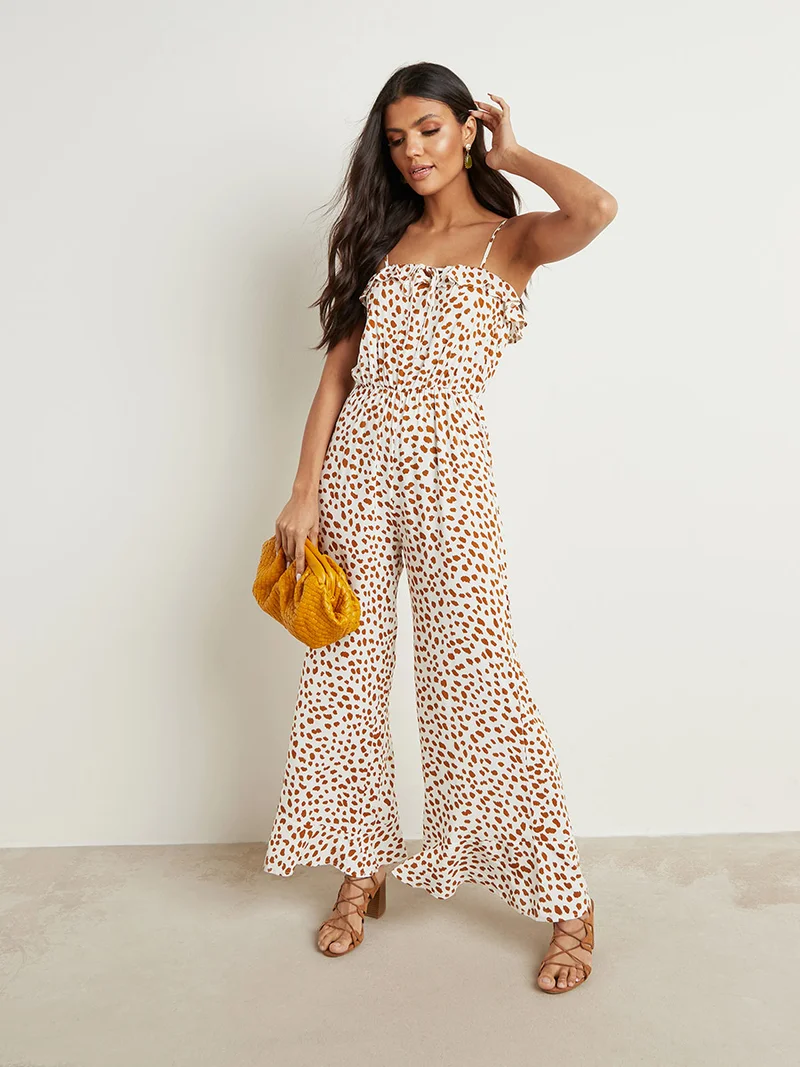 Closet By Styli Ditsy Print Strappy Cullotte Leg Jumpsuit Cream