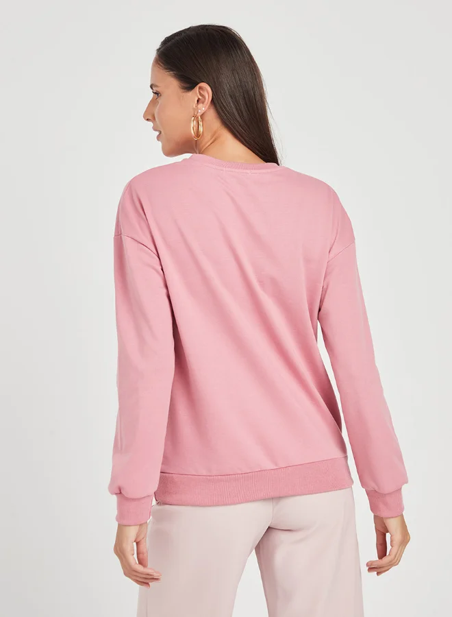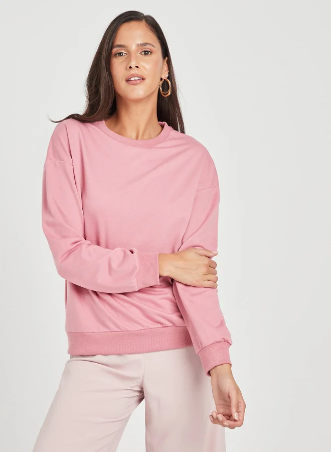Closet By Styli Drop Shoulder Regular Length Sweatshirt Pink