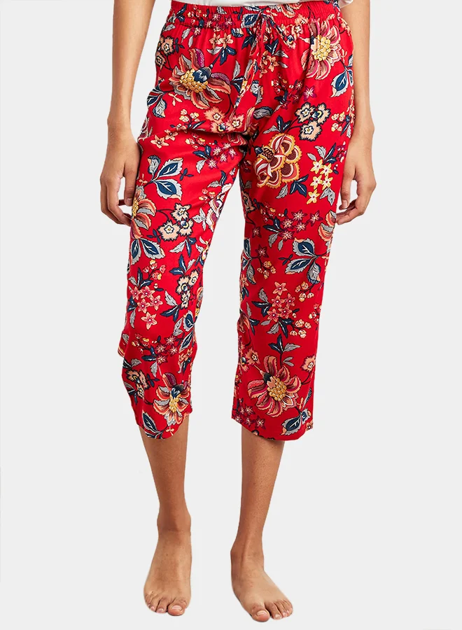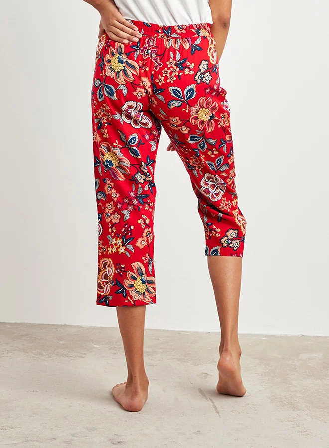 Closet By Styli Floral Print Capri Pants With Elasticated Waistband Red