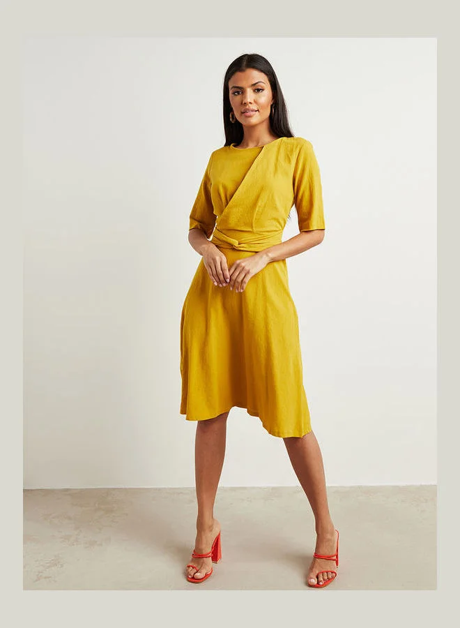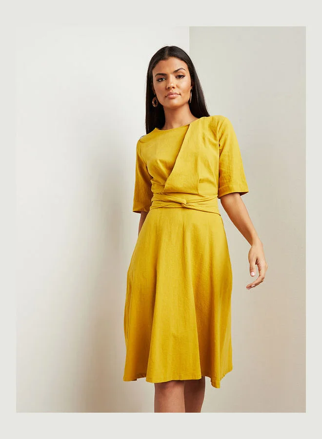 Closet By Styli Knot Waist Detail A-Line Dress Mustard