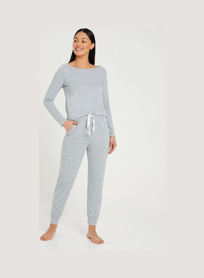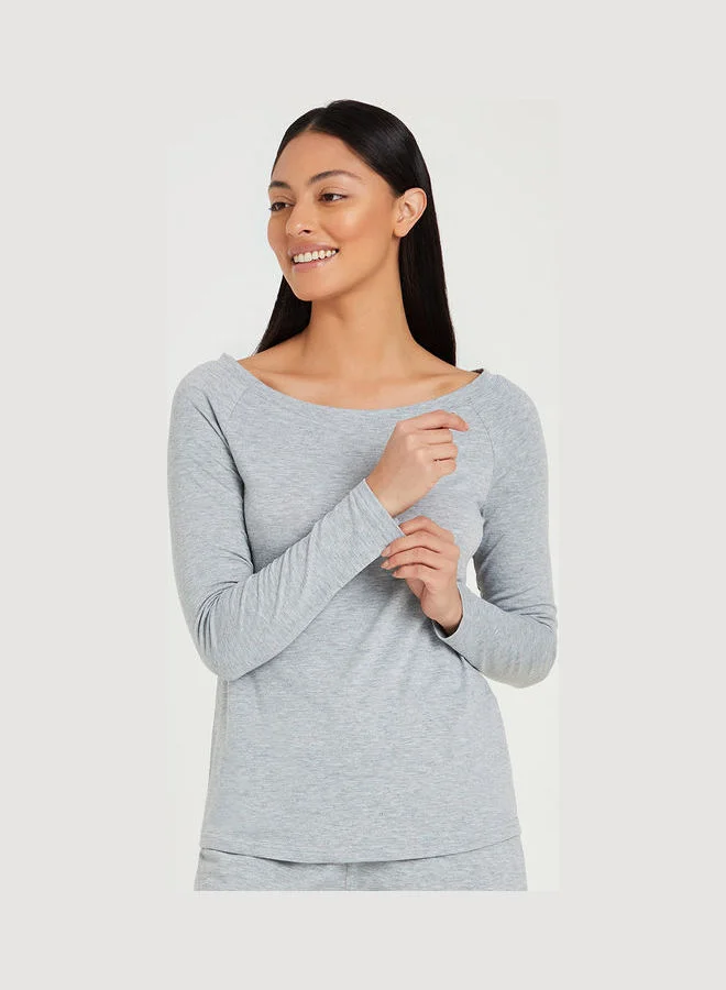 Closet By Styli Long Sleeve Round Neck T-Shirt With Pants Grey