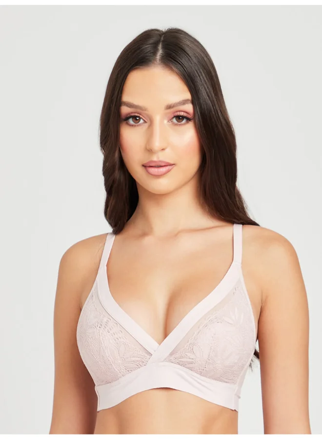 Closet By Styli Padded Non Wired High Apex Lace Broad Brand Finish Plunge Bra Pink