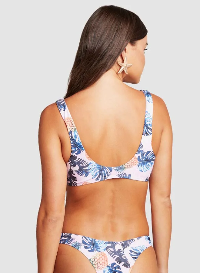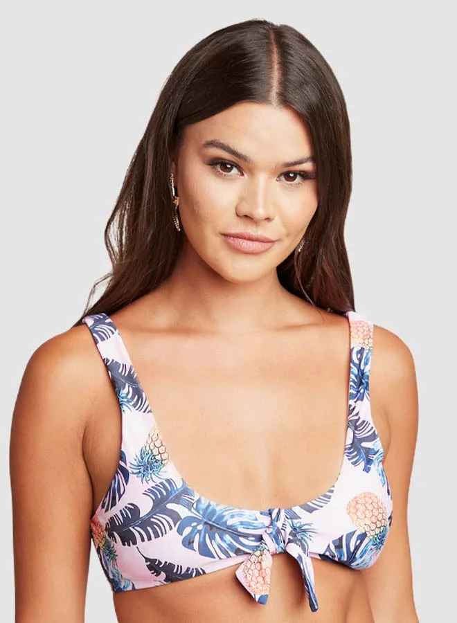 Pineapple Palm Tie Front Bikini Top Multicolour