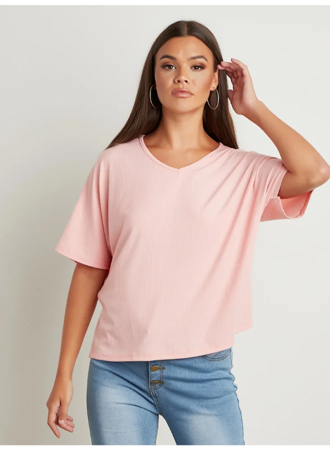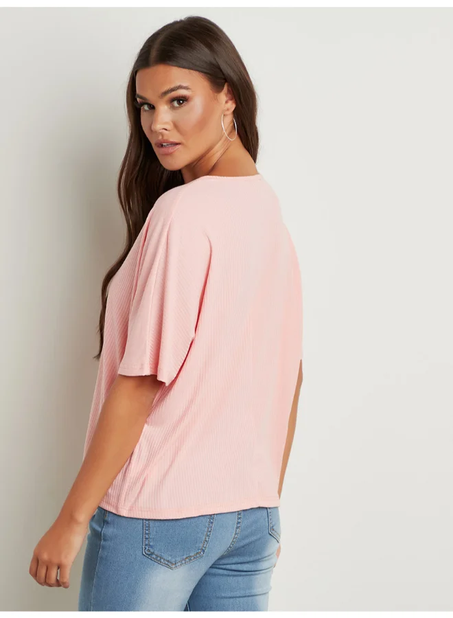 Closet By Styli Plain Boxy Ribbed T-Shirt Pink
