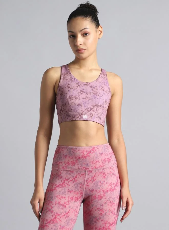 Elevate your workout with this pink printed activewear top for women. Comfortable and stylish for any activity.