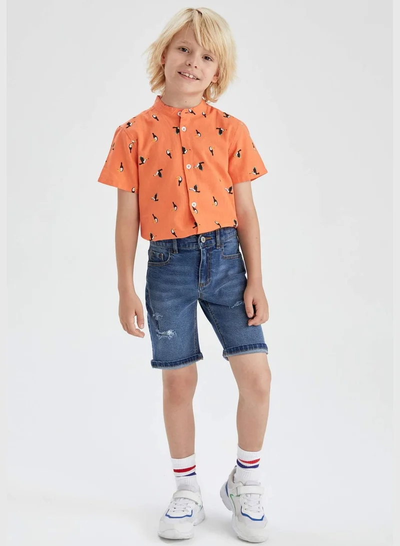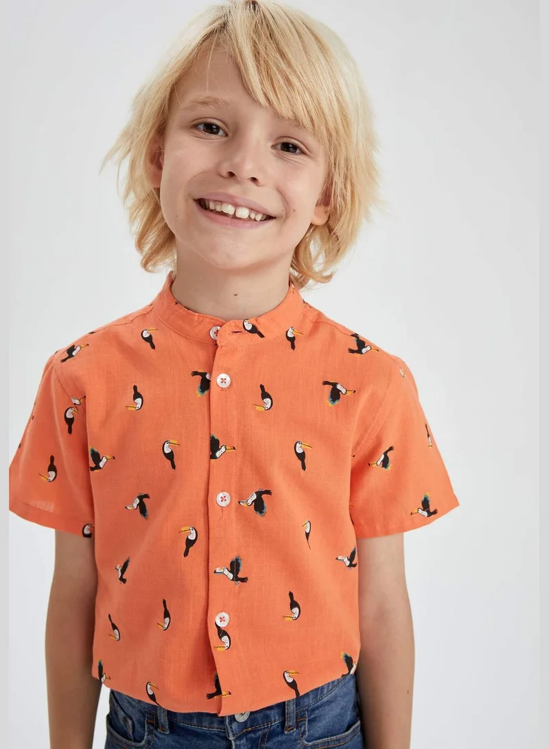 DeFacto Boy Stand Up Collar Woven Short Sleeve Shirt