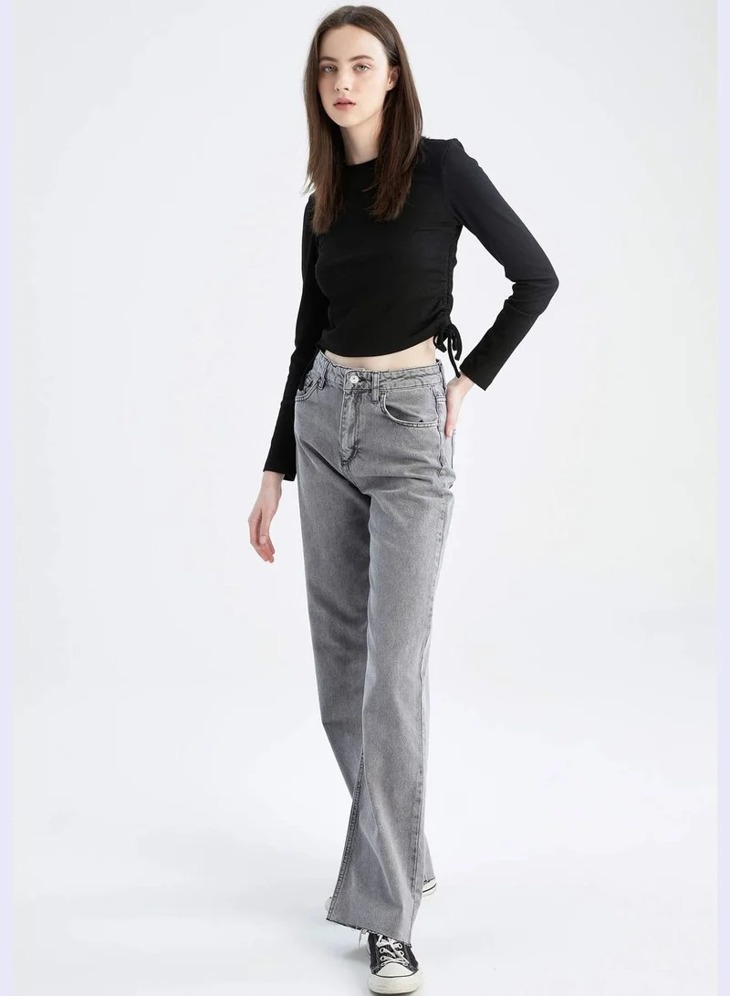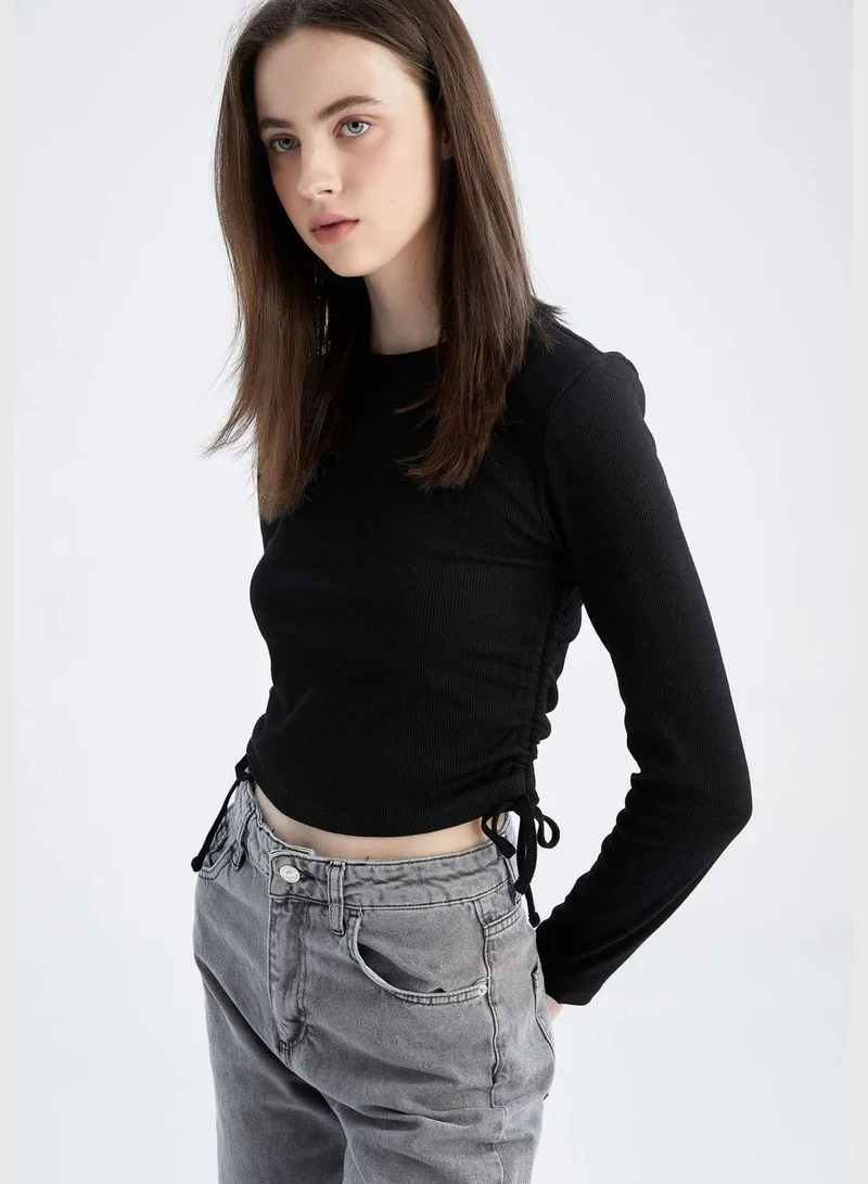DeFacto Slim Fit Basic Long Sleeve Side Tie Cropped Top