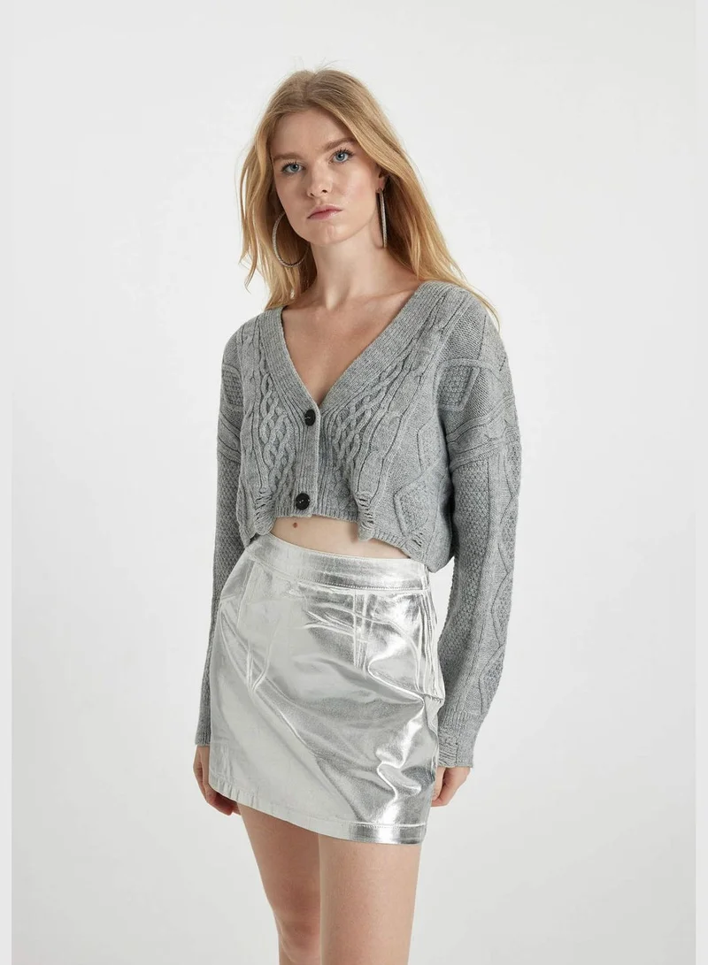 DeFacto Woman V Neck Long Sleeve Tricot Cardigan