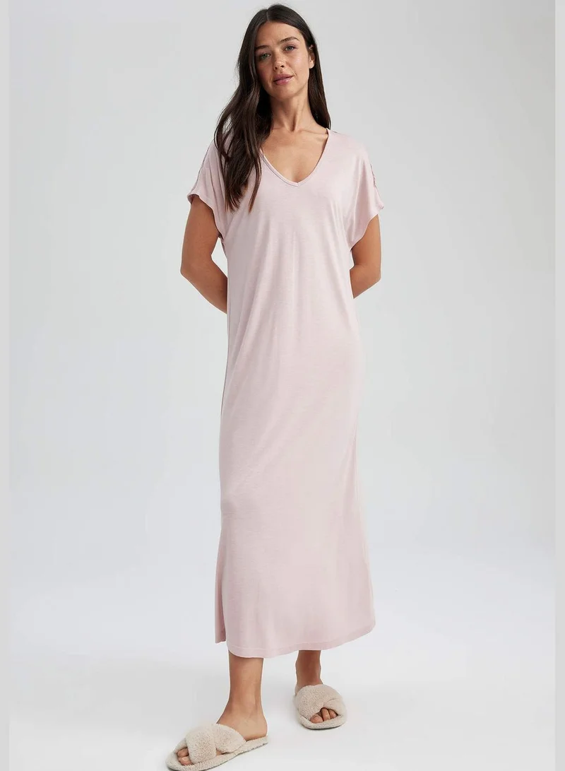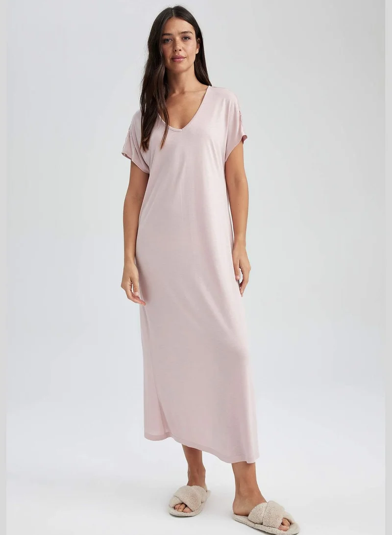 DeFacto Woman V Neck Short Sleeve Homewear Knitted Dress