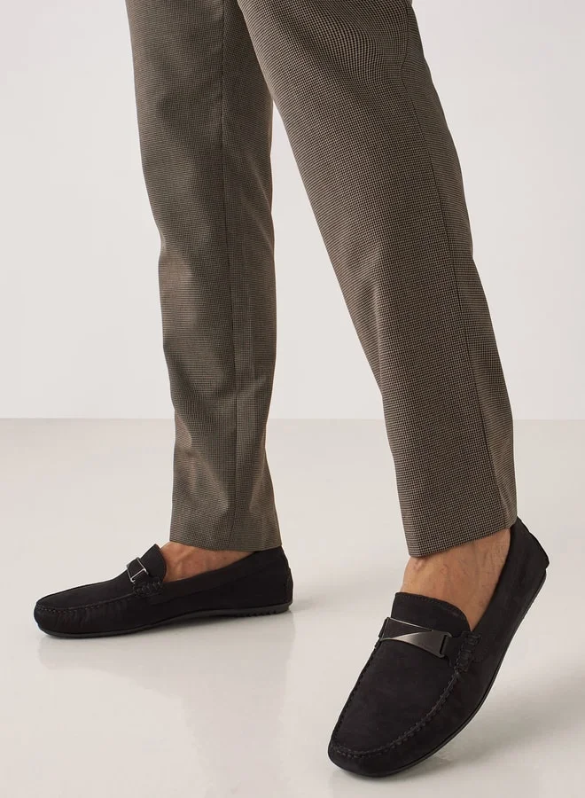 DUCHINI Men Textured Slip On Moccasins with Metallic Accent
