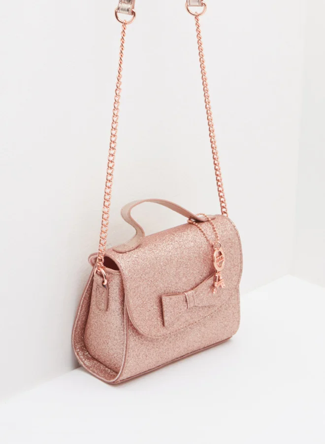 ELLE Bow Detail Flap Over Crossbody Bag Gold