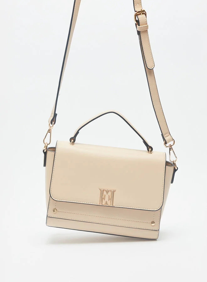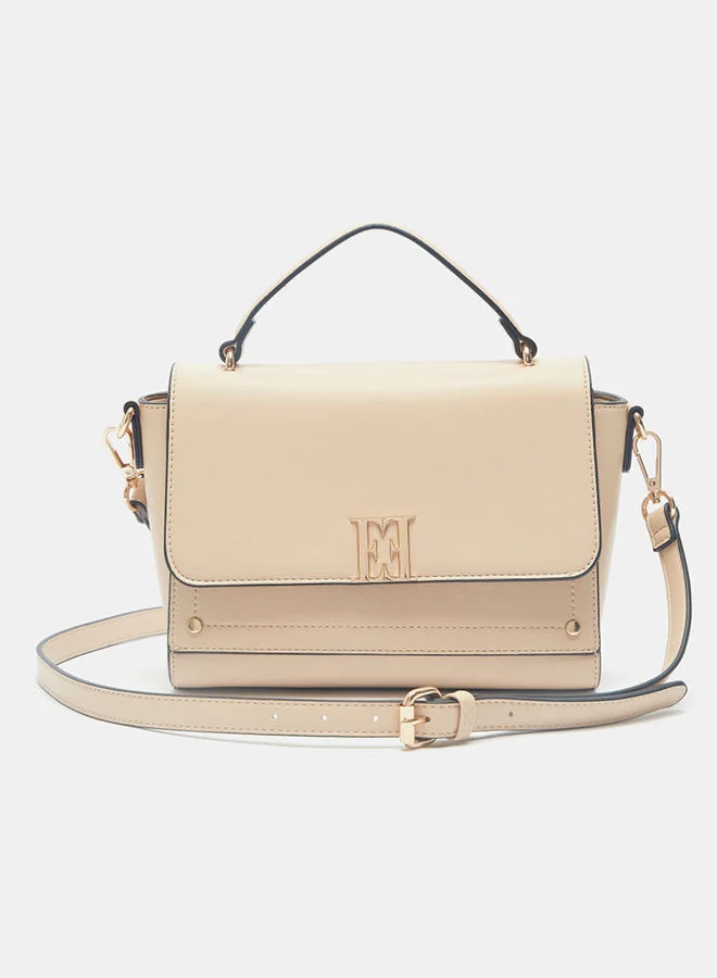 ELLE Solid Satchel Bag With Detachable Strap And Flap Closure