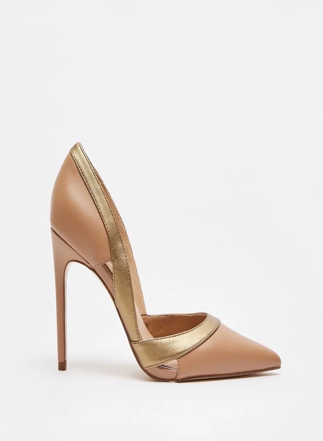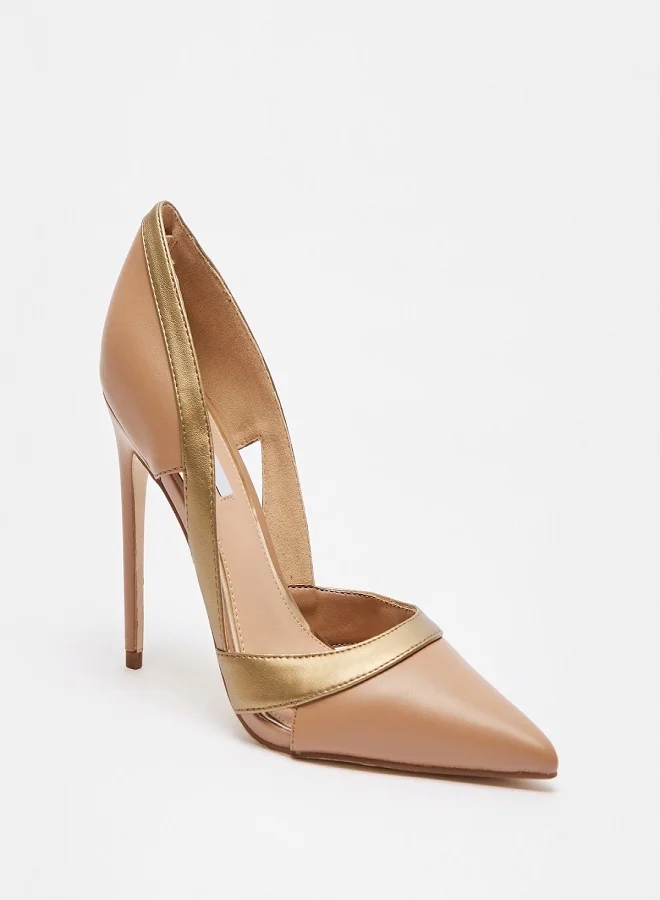 ELLE Women's Panelled Slip-On Shoes With Stiletto Heels Beige