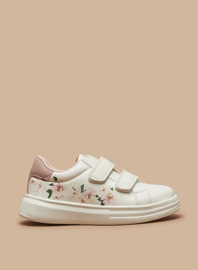 Flora Bella By Shoexpress Girl's Floral Print Casual Sneakers Shoes With Hook And Loop Closure