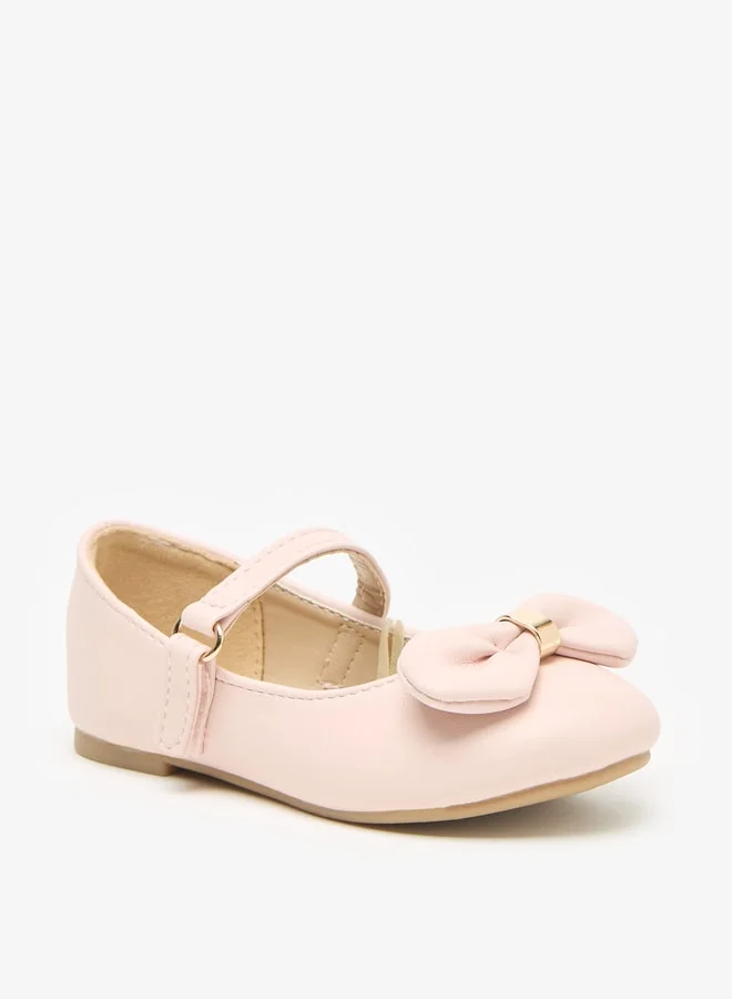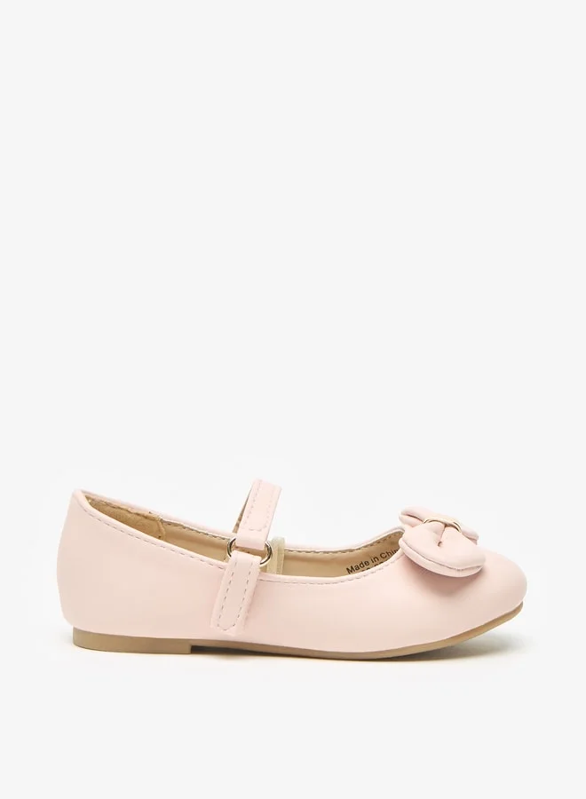 Flora Bella By Shoexpress Girls Bow Accent Round Toe Ballerina Shoes with Hook and Loop Closure