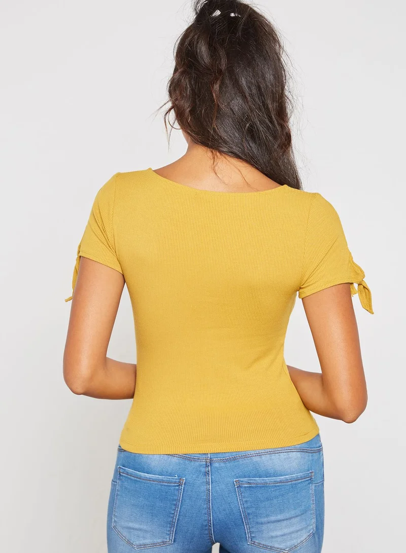 Ribbed Knot Sleeve Top