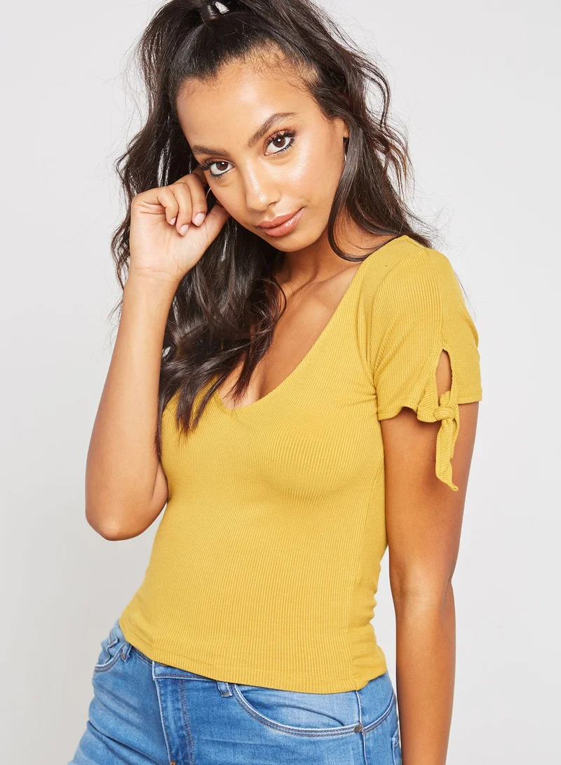 FOREVER 21 Ribbed Knot Sleeve Top