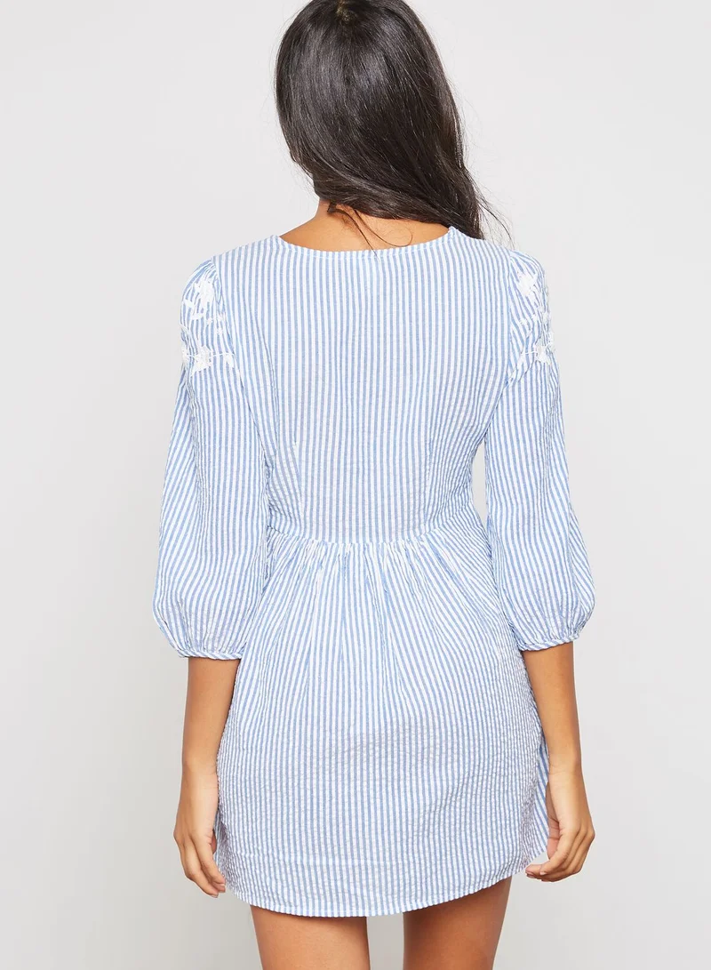 Striped Embroidered Mini Dress