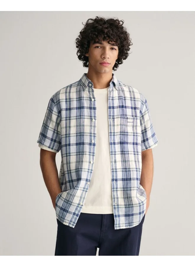 GANT Gant Regular Fit Madras Linen Short Sleeve Shirt