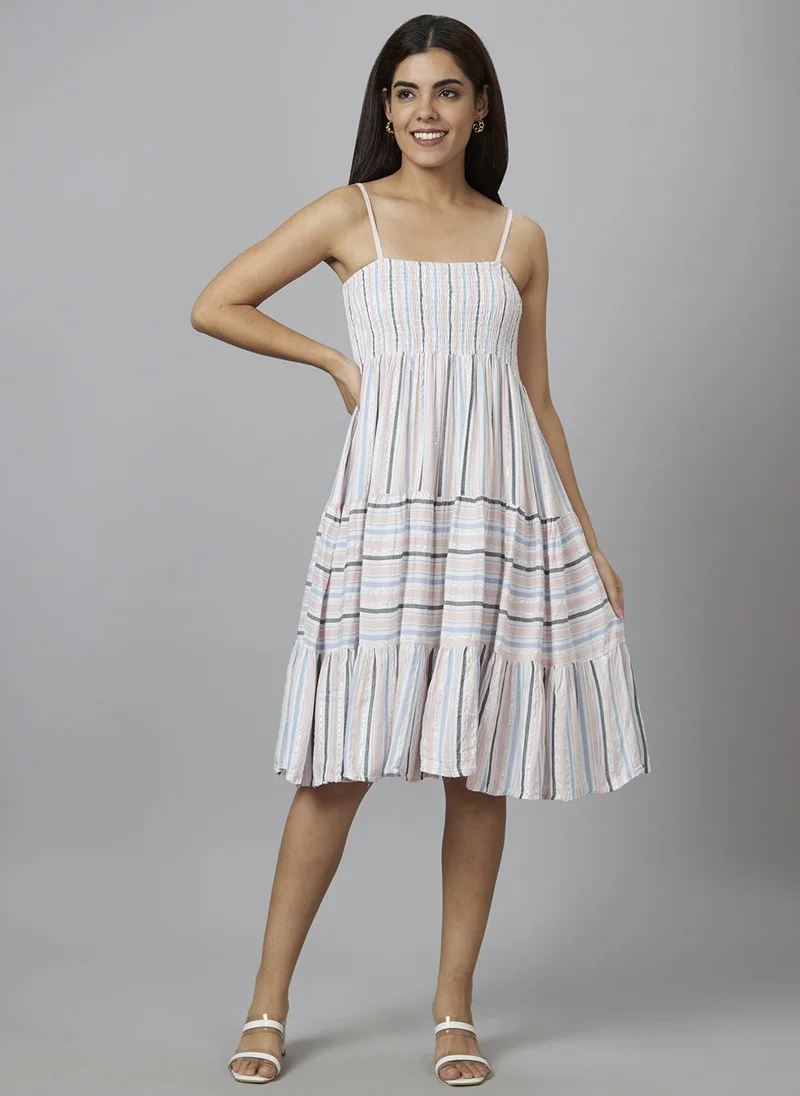 Globus Women Shoulder Straps Striped A-Line Dress