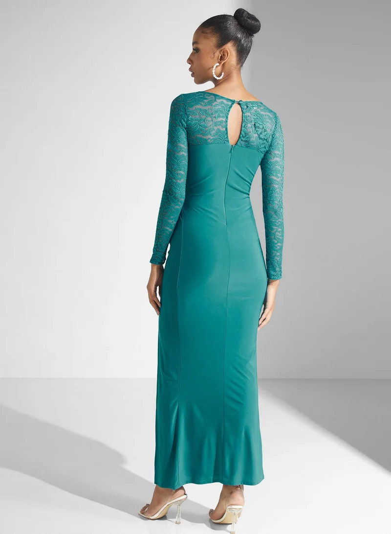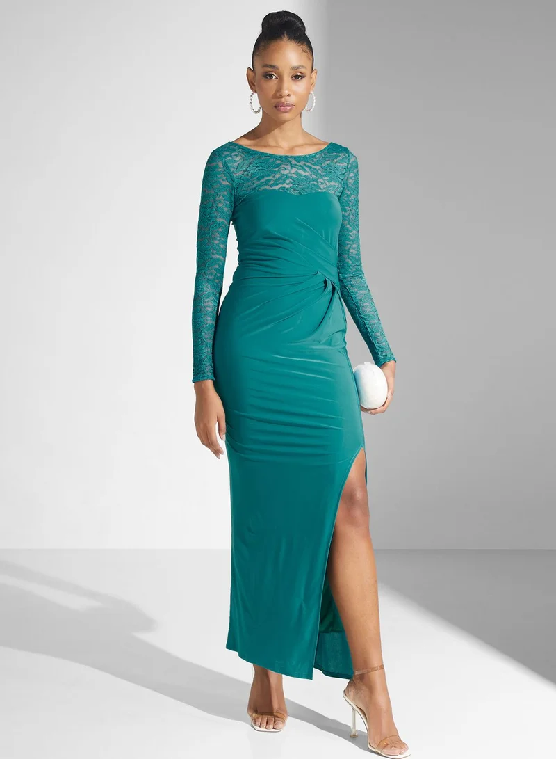 Broidered Twist Side Slit Dress