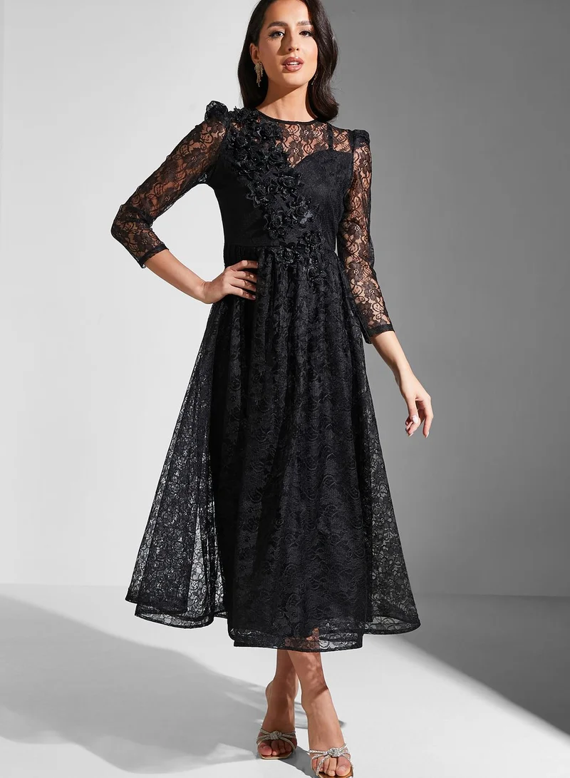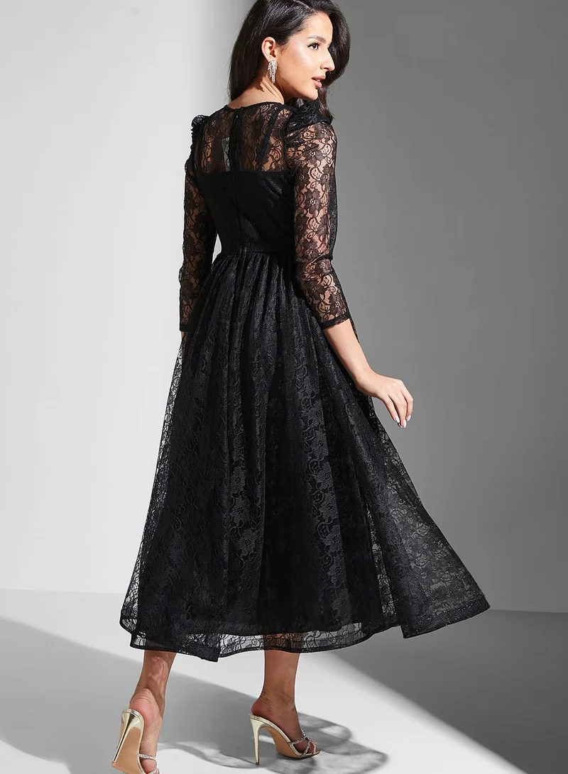 Puff Sleeve Mesh Tiered Dress