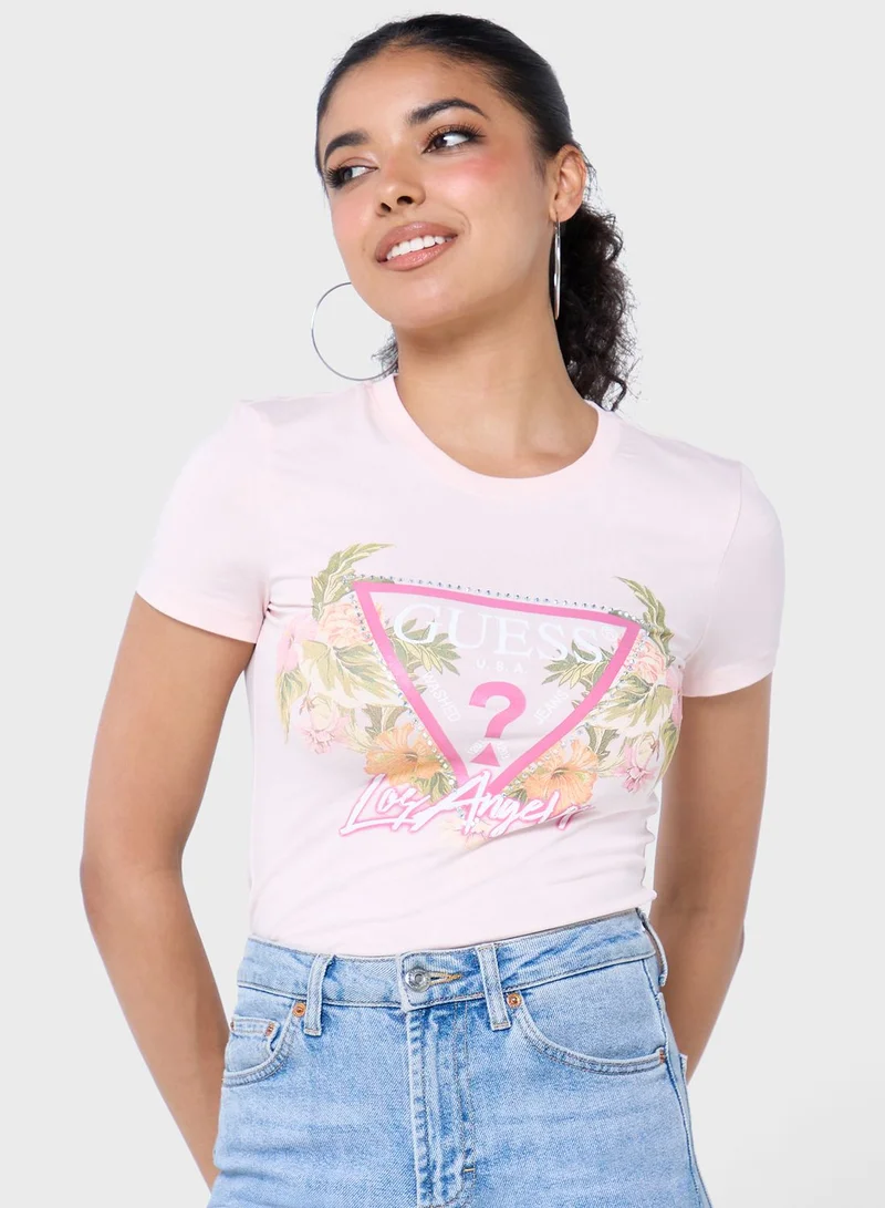 GUESS Crew Neck Printed T-Shirt