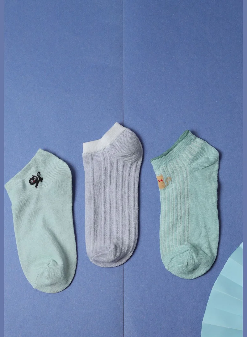 Haute Sauce 3 Pack Textured Cotton No Show Socks For Women