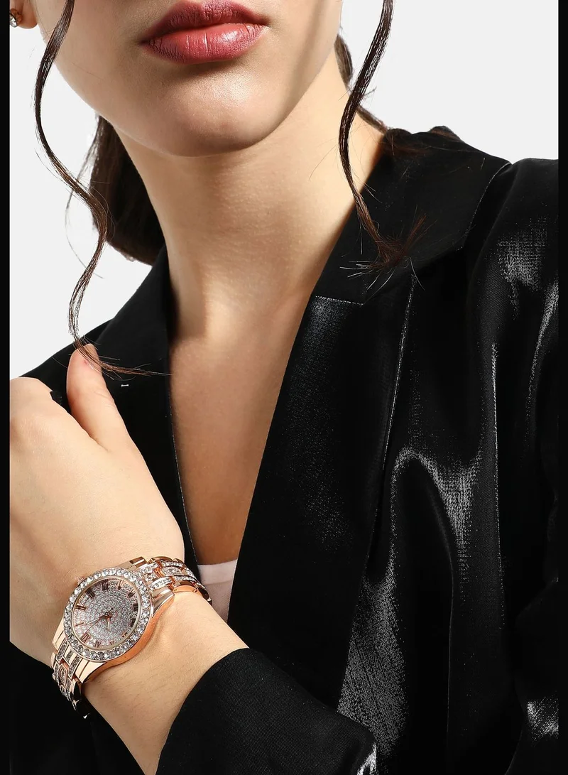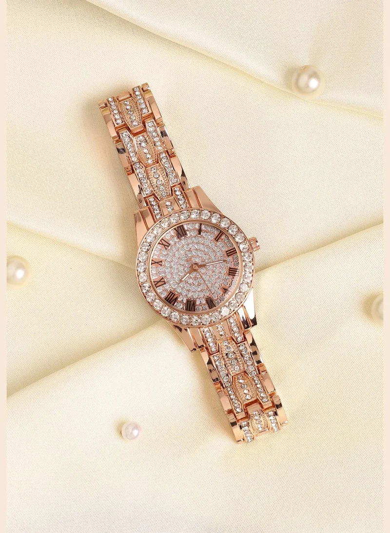 This watch has a embellished analog round dial. Comfortable and durable rose gold stainless steel band. Flexible, comfortable, waterproof, breathable, easy to adjust the watch to your wrist size. The perfect gift for women.