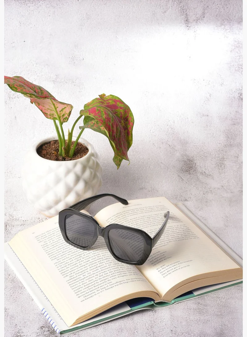 Women Black Lens Black Oversized Sunglasses