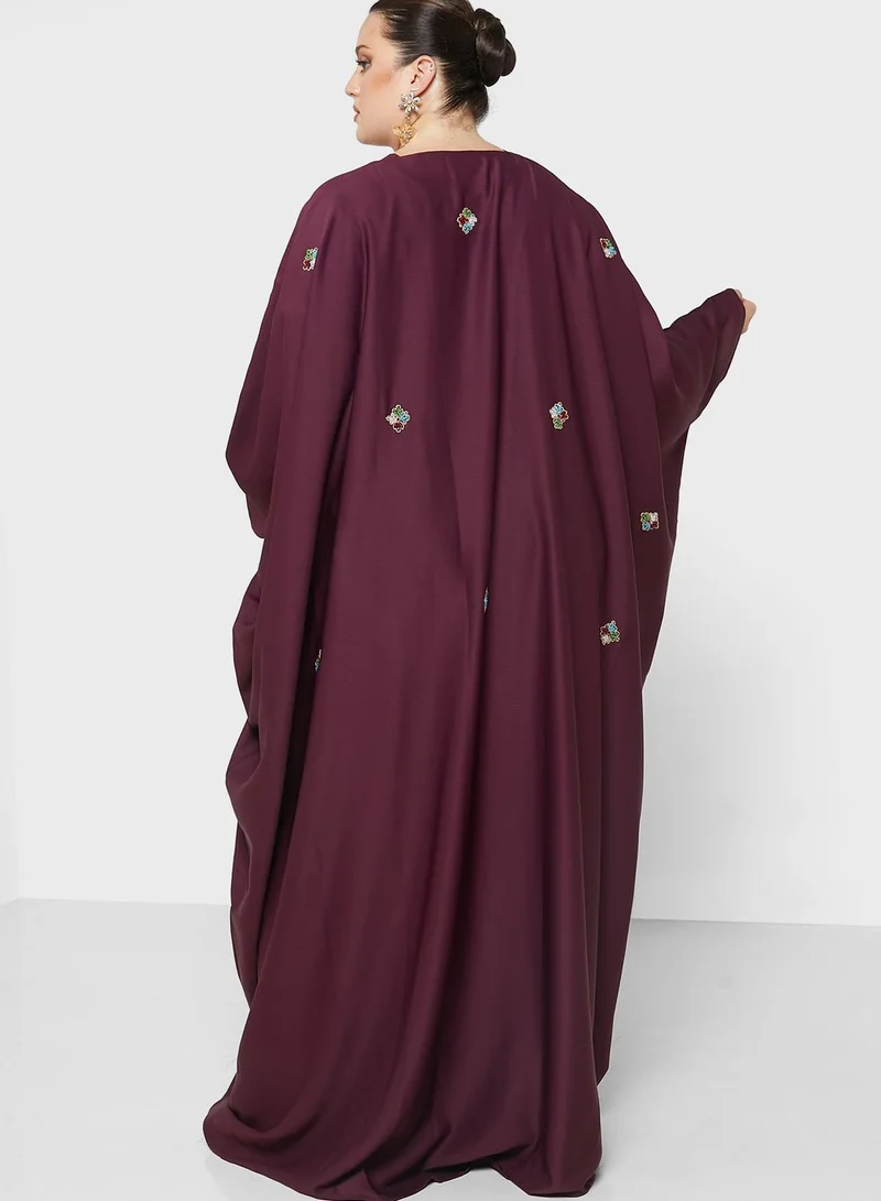 The intricate detailing on this Abaya will add a luxurious touch to your everyday edits. Designed with a traditional flowing silhouette.