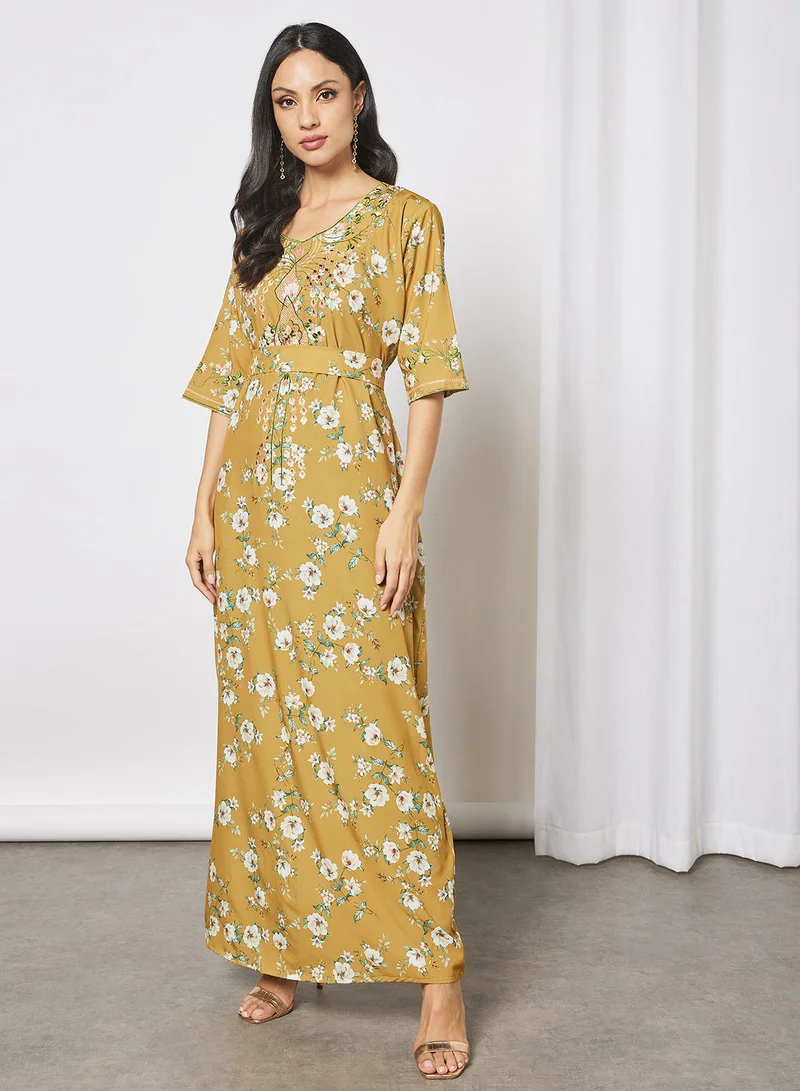 Hayat Floral Jalabiya With Embroidery And With Belt