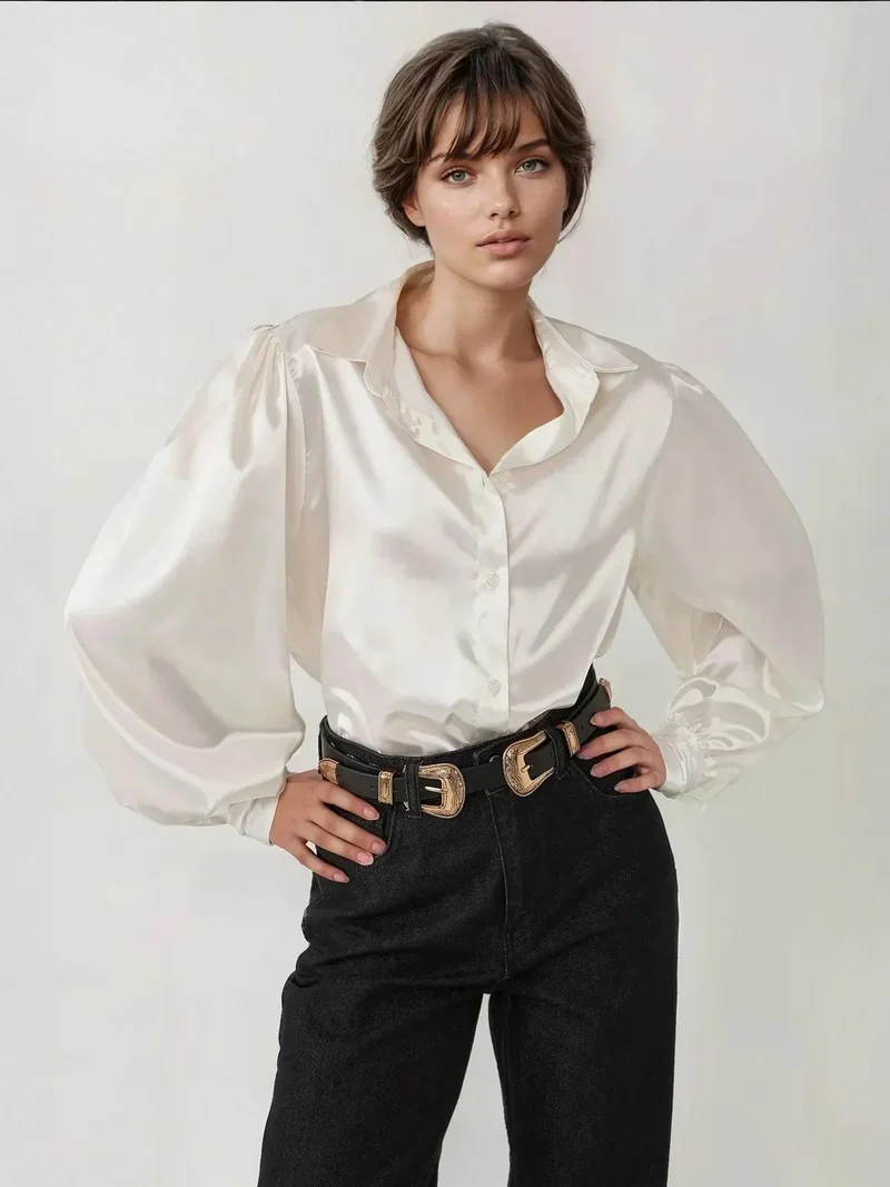 HICCUP Satin Weave Long Baloon Sleeve Shirt