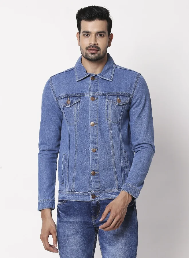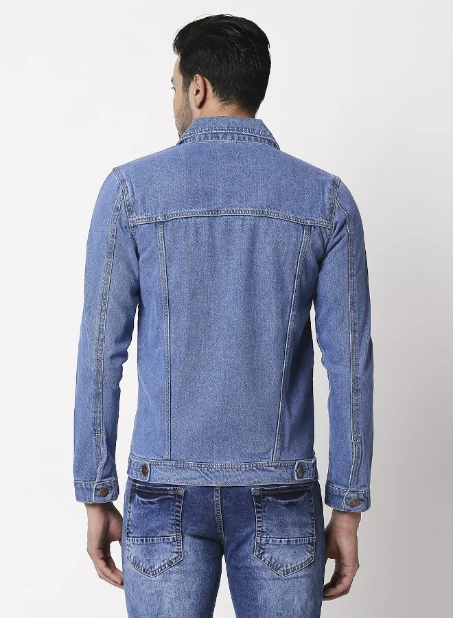 Men Blue Solid Denim Jacket