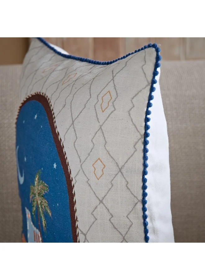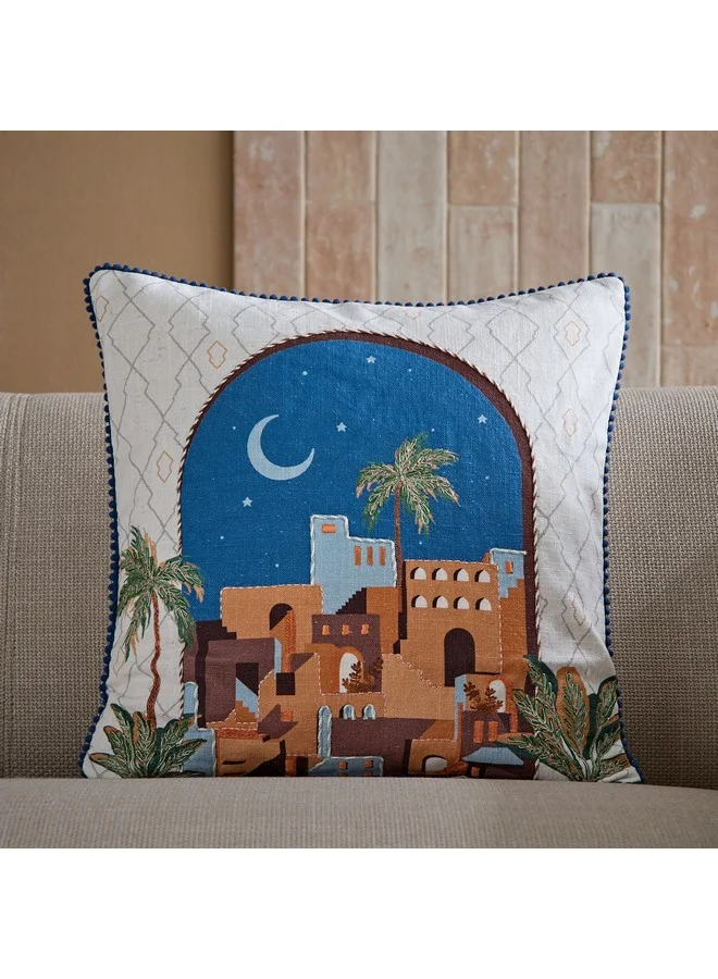 Step into a world of comfort and style with this nomadic lux cityscape-filled cushion. This cushion, crafted from the finest cotton, features an exquisite embellished design that adds a touch of luxury to any living space.