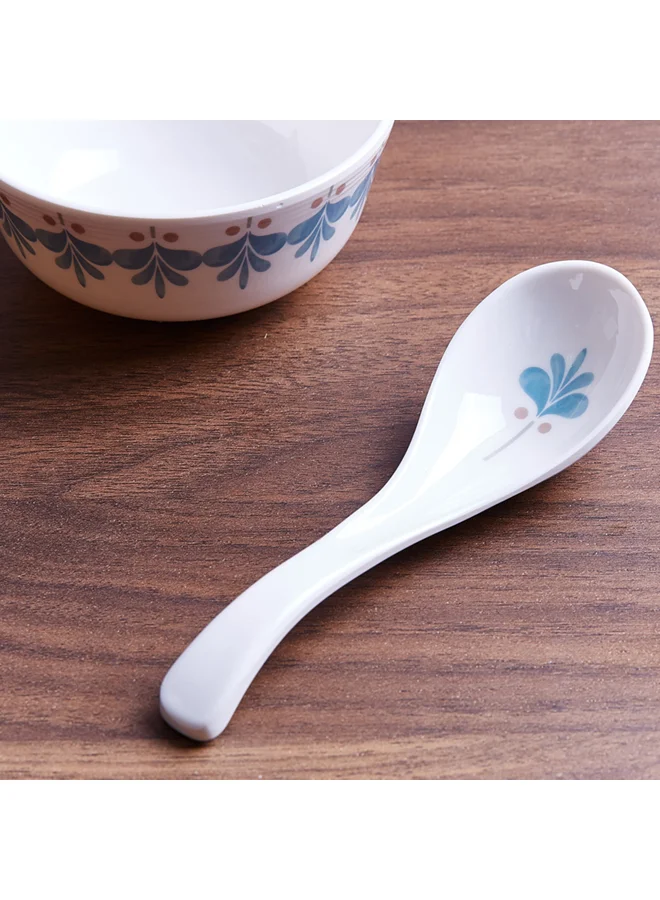 Printed Ceramic Soup Spoon White/Blue