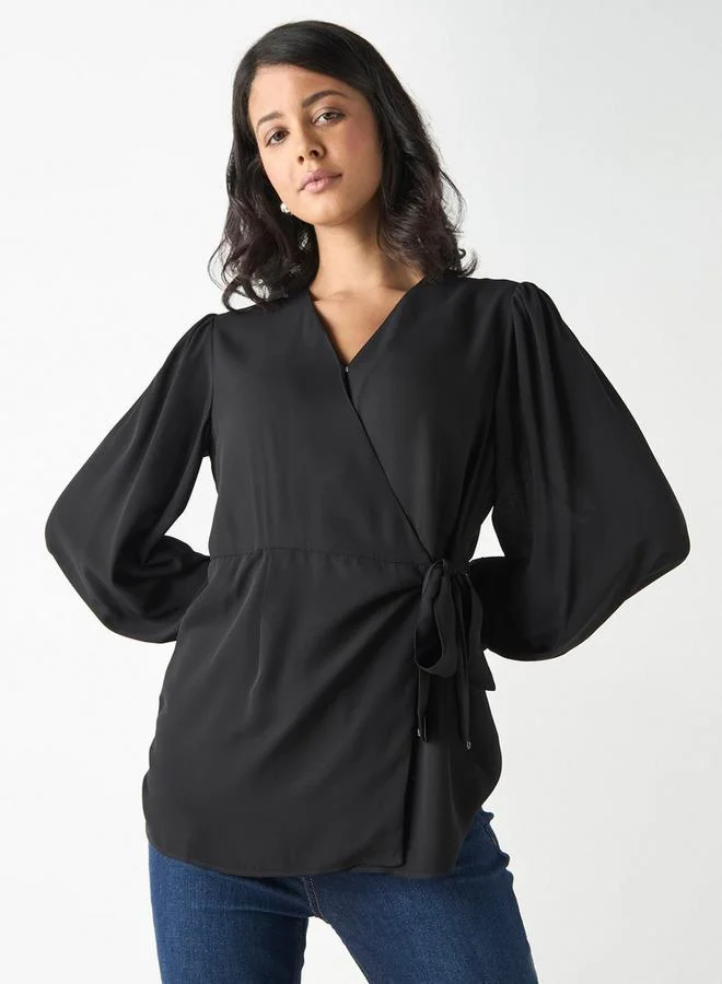 Iconic Iconic Solid Top with Tie-Ups and Volume Sleeves
