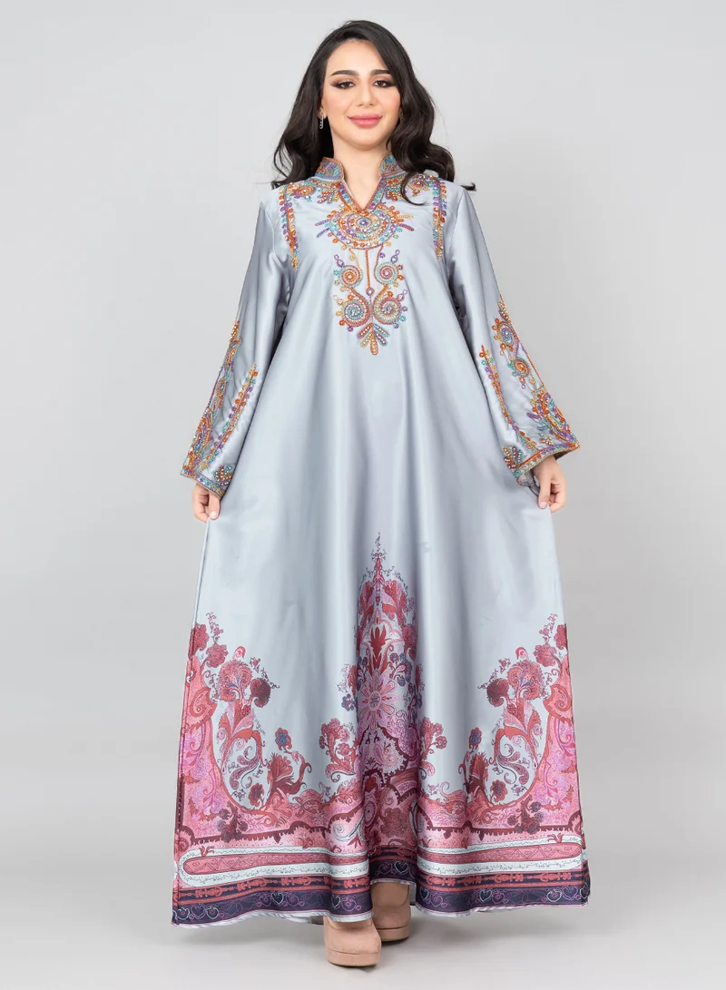Modern Embroidered Jalabiya IK1014 Grey
