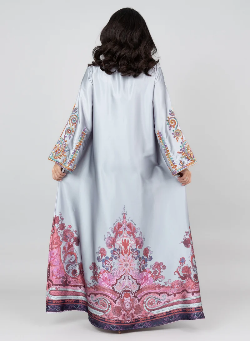IKKXA Modern Embroidered Jalabiya IK1014 Grey