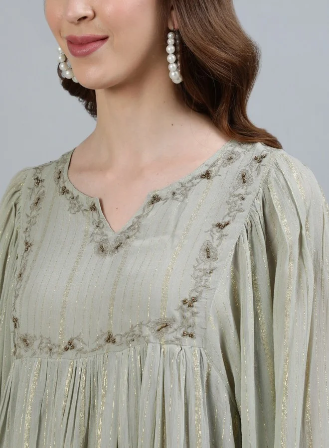 Ishin is a modern celebration of Indian tradition. Since 2012, we’ve been redefining ethnic wear for today’s woman—combining rich cultural aesthetics with contemporary designs. From kurtas and sarees to fusion sets and accessories, Ishin offers thoughtfully crafted fashion for every occasion, blending comfort, elegance, and affordability. Elevate your wardrobe with this stunning grey tops featuring a comfortable aline fit. Designed for style and ease, this piece is perfect for both casual outings and special occasions. Crafted with high-quality fabric, it offers breathability and all-day comfort.