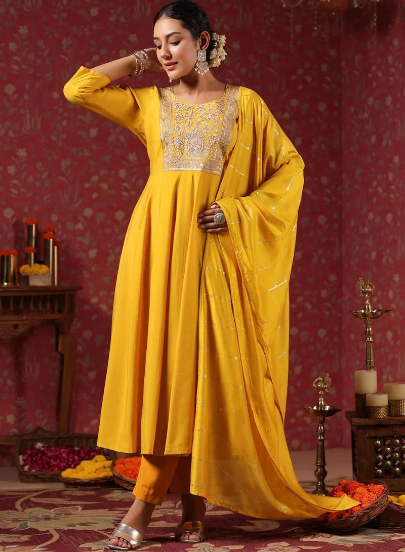 Women's Ethnic MUSTARD STRAIGHT POLY SILK Kurta Set w Dupatta