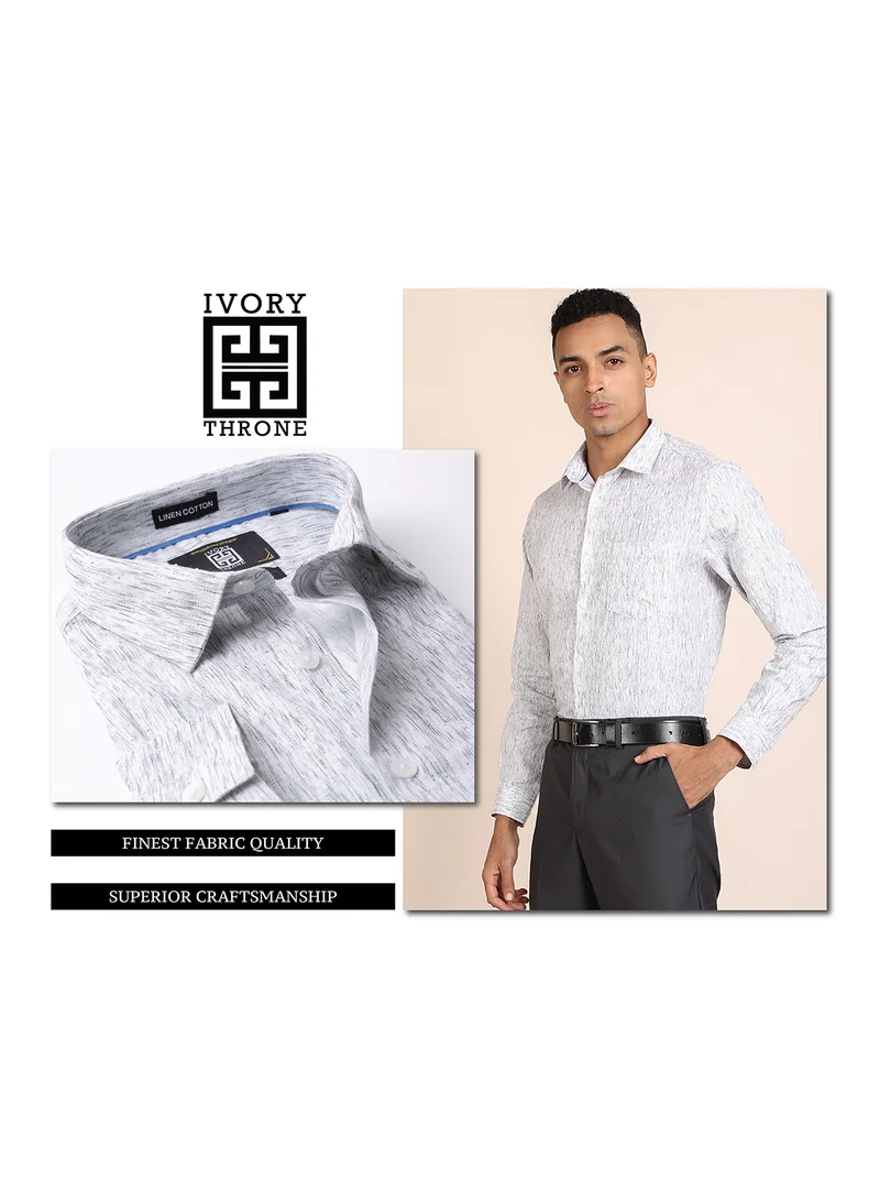 Ivory Throne Classic Printed Semi Cutaway Collared Formal Shirt White